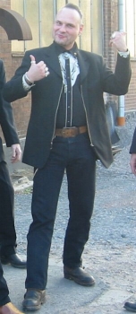 Holtadipolta, hier kommt John Travolta! Nee, daß ist unsere Frontsau Harpo. Alias Paul Prengel aus Pattensen, alias The Duke of South Yonishire, alias Trompeten-Peter. Auch wenn es das Schicksal nicht gut mit Ihm meinte, er hat niemals barfüßig den Unsong 'Movie Star' gesungen. Jedem stößt er ein stumpfes Klappmesser in den Rücken, der das behauptet.